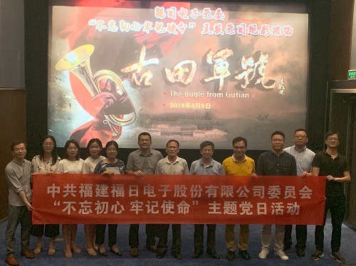 為持續(xù)推進“不忘初心、牢記使命”主題教育,激發(fā)廣大黨員干部更好地“守初心、悟初心、踐初心”,2019年8月8日,福日電子黨委組織黨員干部觀看了革命歷史題材電影《古田軍號》。