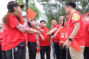 本次活動設置15支參賽隊伍,每支隊伍10人。經過一輪熱身運動和規則講解后,以諾通訊黨支部擬定“以我之力,揚帆起航;許你之諾,筑夢遠洋”的比賽口號,參賽隊員們精神抖擻、干勁十足,奮力沖向各闖關點。各隊隊員通過相互合作都順利完成了闖關任務,最后大家回到起點共同繪制建黨100周年巨幅海報。通過本次活動,公司參賽黨員不僅重溫了中國共產黨的光輝歷程和紅軍長征的歷史,更堅定了大家跟黨走的決心和推動企業高質量發展的信心。