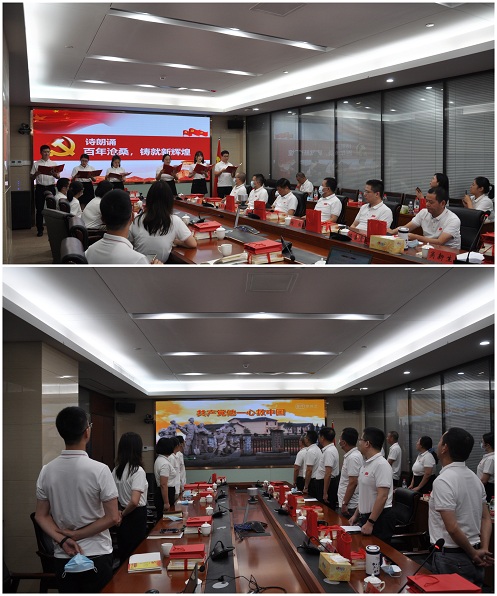 觀看大會直播后,本部黨總支隨即組織了“慶祝中國共產黨百年華誕”主題黨日活動。會上給總支全體黨員發放了慶祝建黨100周年紀念品和四史學習教育書籍,并由黨員代表現場表演詩朗誦《百年滄桑,鑄就新輝煌》,回顧黨領導人民團結奮進、砥礪前行的光輝歷程,感受祖國的發展成就。活動在《沒有共產黨就沒有新中國》激情飽滿的歌聲中結束,大家用歌聲唱出了對黨深深的祝福,抒發了對黨和祖國的熱愛之情,進一步堅定聽黨話、跟黨走的決心,凝心聚力推動企業高質量發展。