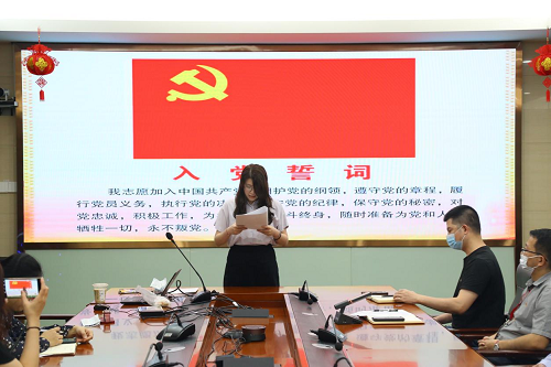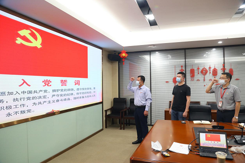 活動中,黨員代表和預備黨員代表分別重溫了入黨志愿書,講述了自己加入中國共產黨的心路歷程。“我志愿加入中國共產黨,擁護黨的綱領,遵守黨的章程……”在莊嚴肅穆的氛圍中,全體黨員在王忠偉書記帶領下,舉起右手重溫入黨誓詞。這是初心使命的再宣誓,接續奮斗的再出發。