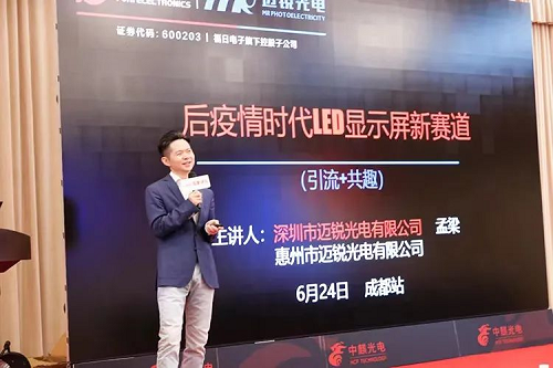 6月24日,大屏幕顯示百家講壇全國系列巡展活動(dòng)第四站在成都圓滿落幕。本次活動(dòng)以“迎接LED顯示行業(yè)劇變時(shí)代”為主題,匯聚眾多行業(yè)專家和產(chǎn)業(yè)鏈上下游的代表企業(yè),以解讀報(bào)告、主題演講、創(chuàng)新產(chǎn)品與解決方案等形式,共同探討行業(yè)前沿技術(shù)與應(yīng)用,深度解析LED顯示行業(yè)發(fā)展新趨勢(shì)。福建省電子信息集團(tuán)成員企業(yè)福建福日電子股份有限公司所屬邁銳光電有限公司受邀出席本次活動(dòng),為現(xiàn)場(chǎng)觀眾帶來《后疫情時(shí)代LED顯示屏新賽道》主題分享。