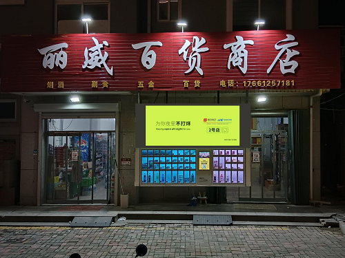 “2號店”由國家信息中心與華融資產管理公司合資成立,其針對小微商戶研發的智能銷售終端,平時隱藏在招牌中,夜間或假期小店關門后就從招牌里“降下來”,讓門店“一鍵切換”實現24小時營業,開啟了線上線下融合新消費模式。為積極響應國家推動小店經濟發展相關政策,在綜合考慮考量性能、價格等核心指標,邁銳光電與“2號店”強強聯合,以“讓生意更容易”為出發點,全力打造智能招牌系統,提供LED整體解決方案。