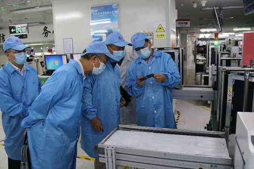 胡文海一行還實地考察了以諾通訊的生產車間認真聆聽自動化生產線及產品介紹,對以諾通訊的制造能力給予高度評價。
