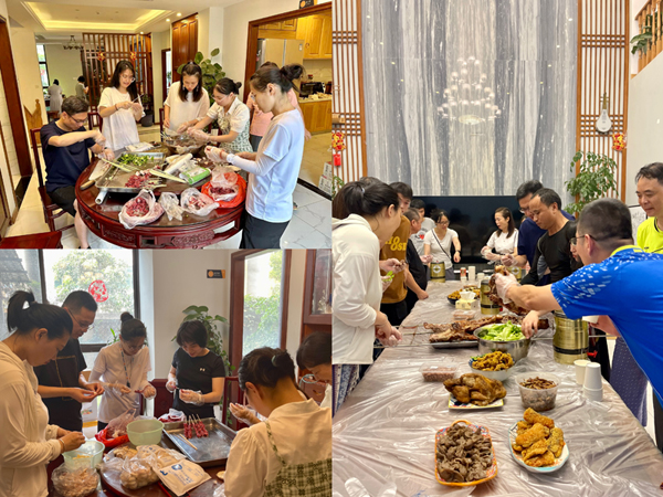登山活動結束后,大家親自動手挑選食材,共同準備晚餐。各部門精心準備特色菜品,紛紛拿出看家本領一顯身手。在烹飪過程中,眾人各盡所長、配合默契,共同協作,制作出了一道道色香味俱全的美食佳肴。