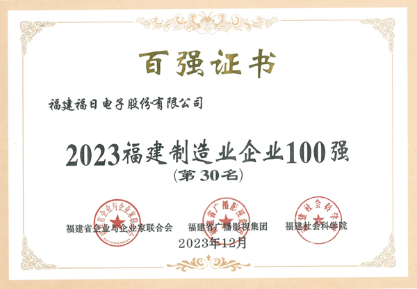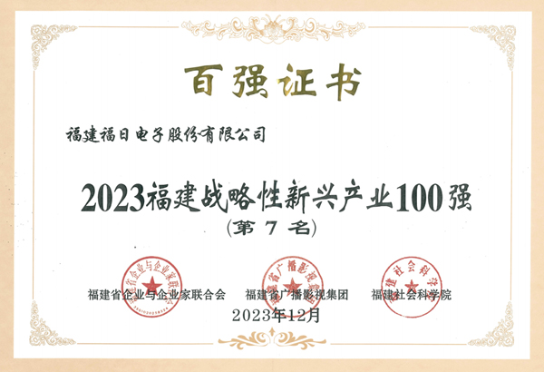 12月19日,在備受矚目的2023福建企業100強發布大會上,福日電子再次上榜,榮登福建制造企業100強第三十位、福建戰略性新興產業企業100強第七位。值得一提的是,這是福日電子首次入圍福建戰略性新興產業企業100強并躋身前列,也是公司連續第五年入圍福建省制造企業100強。