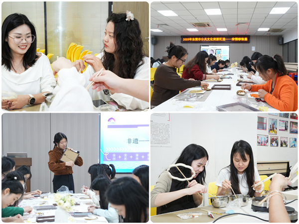 相比常規(guī)文化活動,本次體驗項目更側重文化認知與技能參與的結合,使非遺從展示走向互動,從觀看走向實踐,讓傳統(tǒng)工藝在現(xiàn)代工業(yè)場景中呈現(xiàn)新的表達方式。活動現(xiàn)場輕松愉悅、富有活力,多小組在制作過程中展開交流探討,增強了團隊協(xié)作與文化體驗的獲得感。